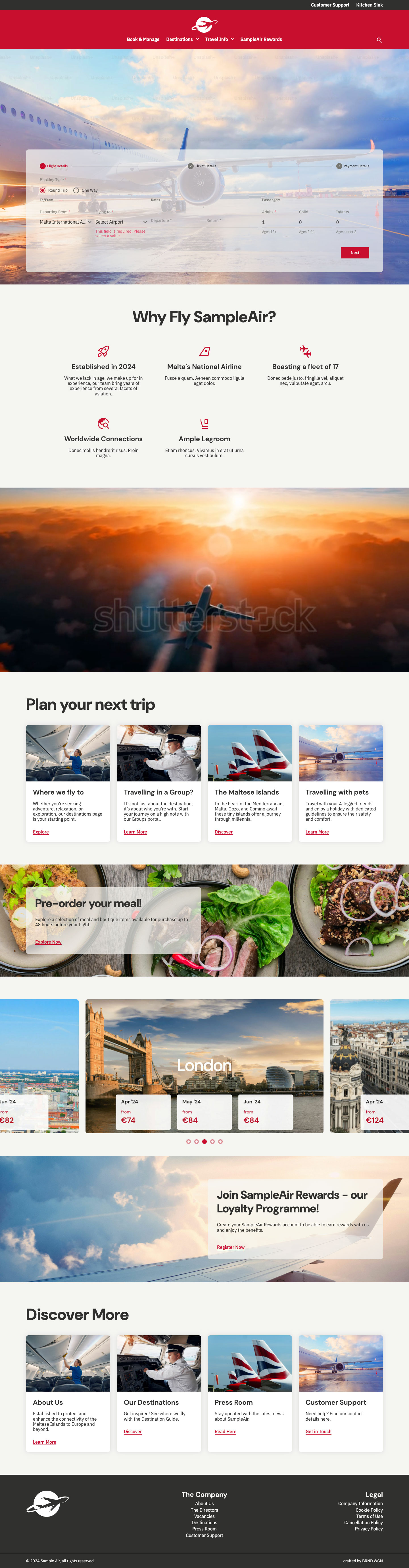 Airline template, allowing users to initiate bookings, view location details, and get a better idea of the airline’s services