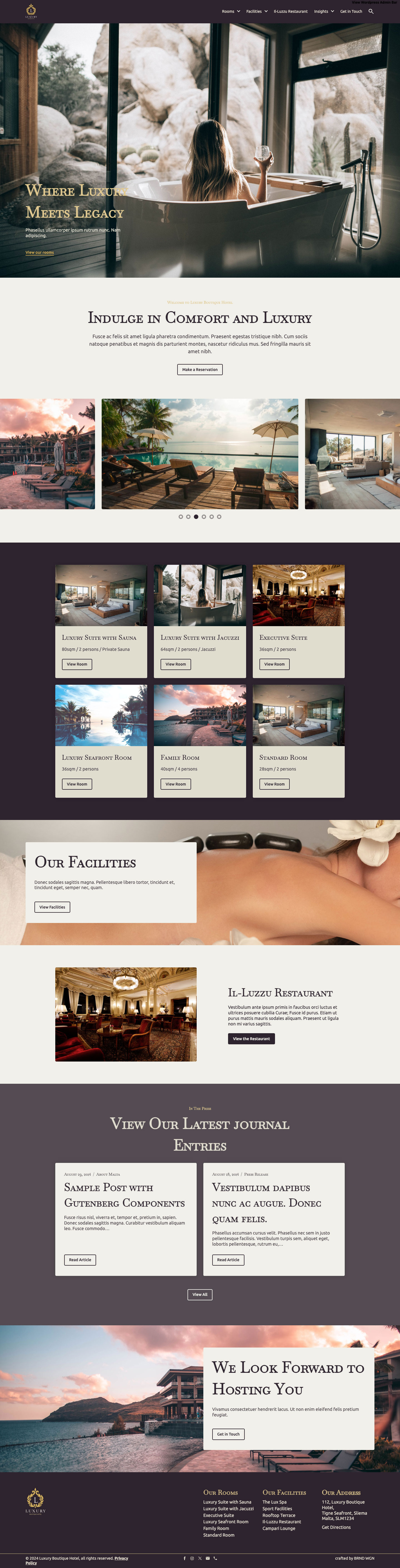 Template focussing on directing prospective hotel guests to the various facilities and features offered by the hotel.
