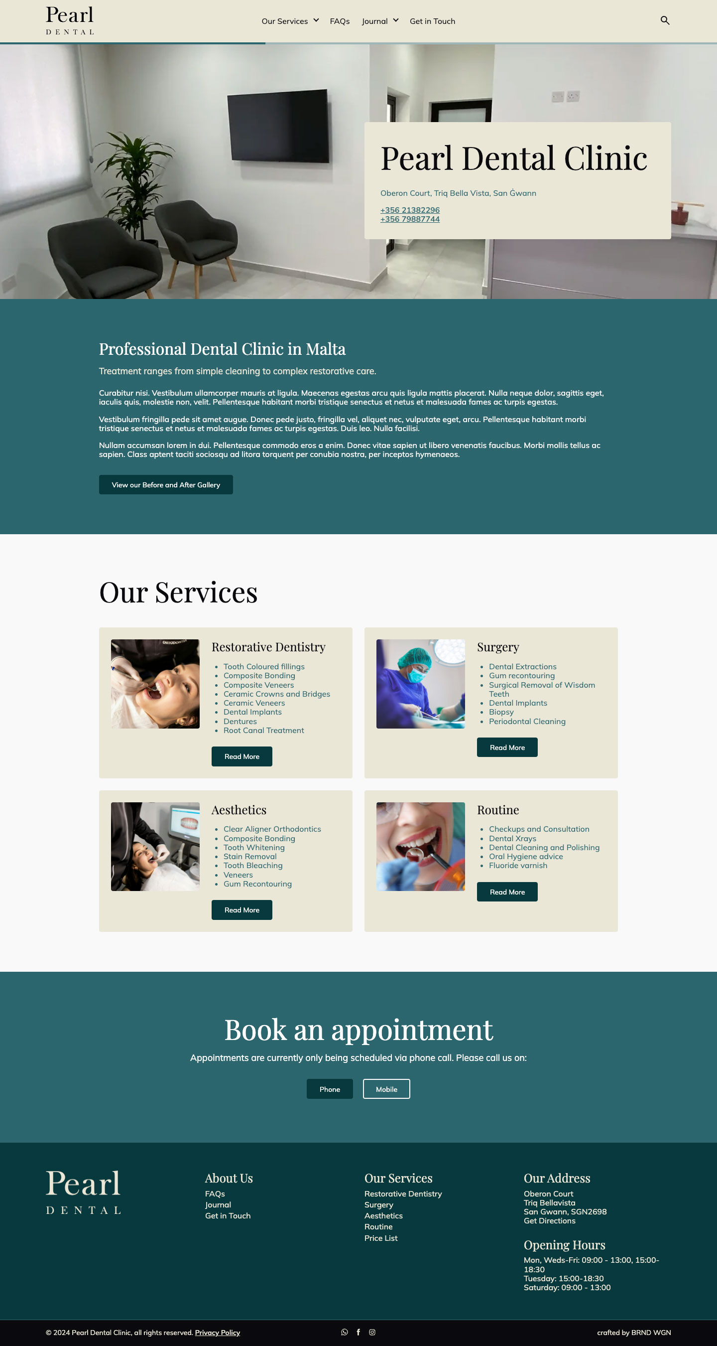 Template showcases clean lines, primarily focussed on conveying services offered, along with the clinic’s location.