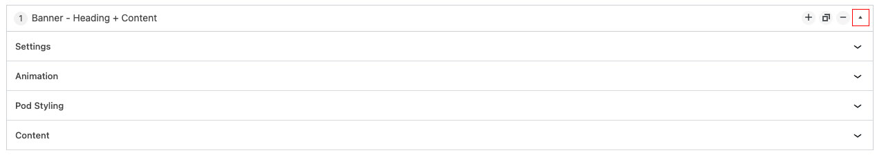 In the event that a page has a large number of components, the collapse icon at the top-right of each component (as outlined below) may be used to minimise the footprint taken up by each component, making it easier to drag individual components to the correct spot with minimal scrolling.